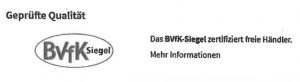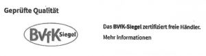wie Ihnen größtenteils bekannt sein dürfte, konnten BVfK-Mitglieder, die sich den Qualitätsrichtlinien unseres Verbandes unterwerfen, bis zum Jahre 2019 das sogenannte „BVfK-Siegel“ nutzen. Dieses wurde unter anderem bei der Plattform Autoscout24 verwendet und dort in einen Kontext eingebunden, der nicht aus der Feder des BVfK stammt. Die gesamte Darstellung sah wie folgt aus:
